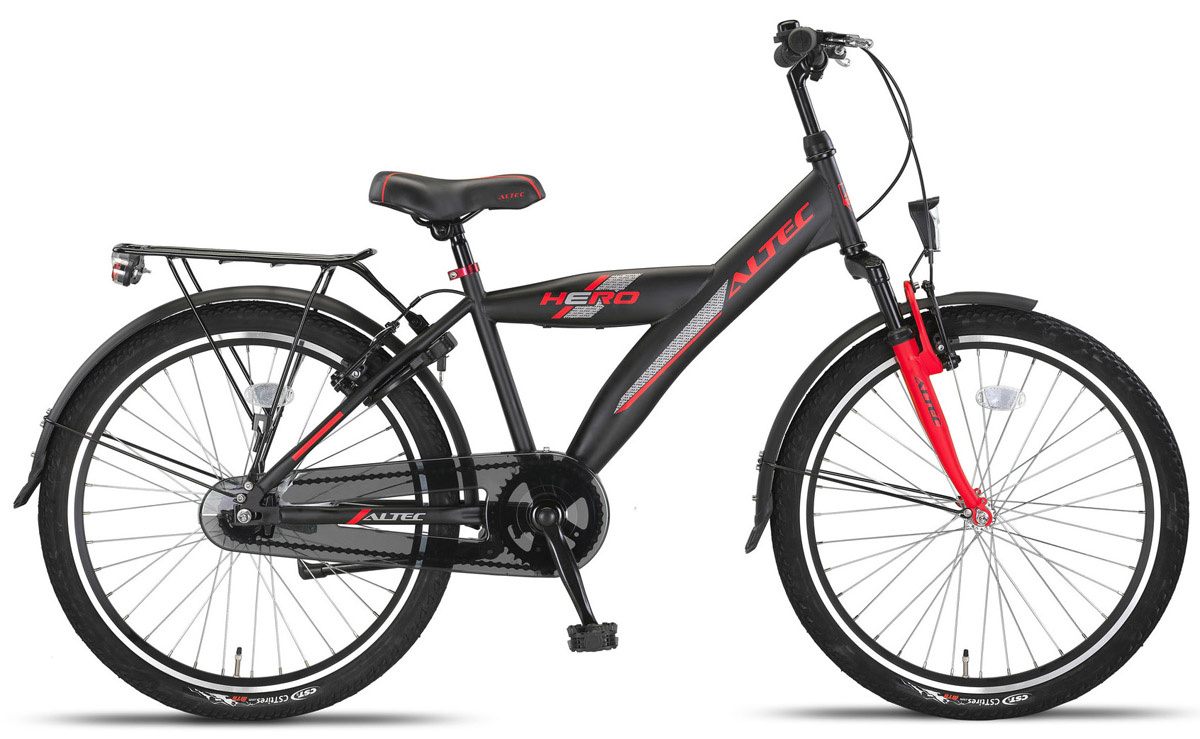 Altec Hero 24 inch kinderfiets jongens – Met deze kinderfiets is het een waar plezier om te rijden! De stevige fiets kan makkelijk tegen een stootje. Dit komt mede door het stevige frame waarover deze beschikt. Dit is namelijk volledig gemaakt van staal. De voorvork is vast, wat er voor zorgt dat dit een zeer comfortabele fiets is. Hierdoor worden oneffenheden in het wegdek goed opgevangen. De fiets beschikt over batterijverlichting, deze zorgt voor zichtbaarheid in het donker. Uiteraard is er ook aan de veiligheid van de fiets en fietser gedacht. De Altec Hero heeft namelijk 2 velgremmen én een terugtraprem. De velgen zijn lichtgewicht en goed bestand tegen roest. Ze bestaan namelijk uit dubbelwandig aluminium.